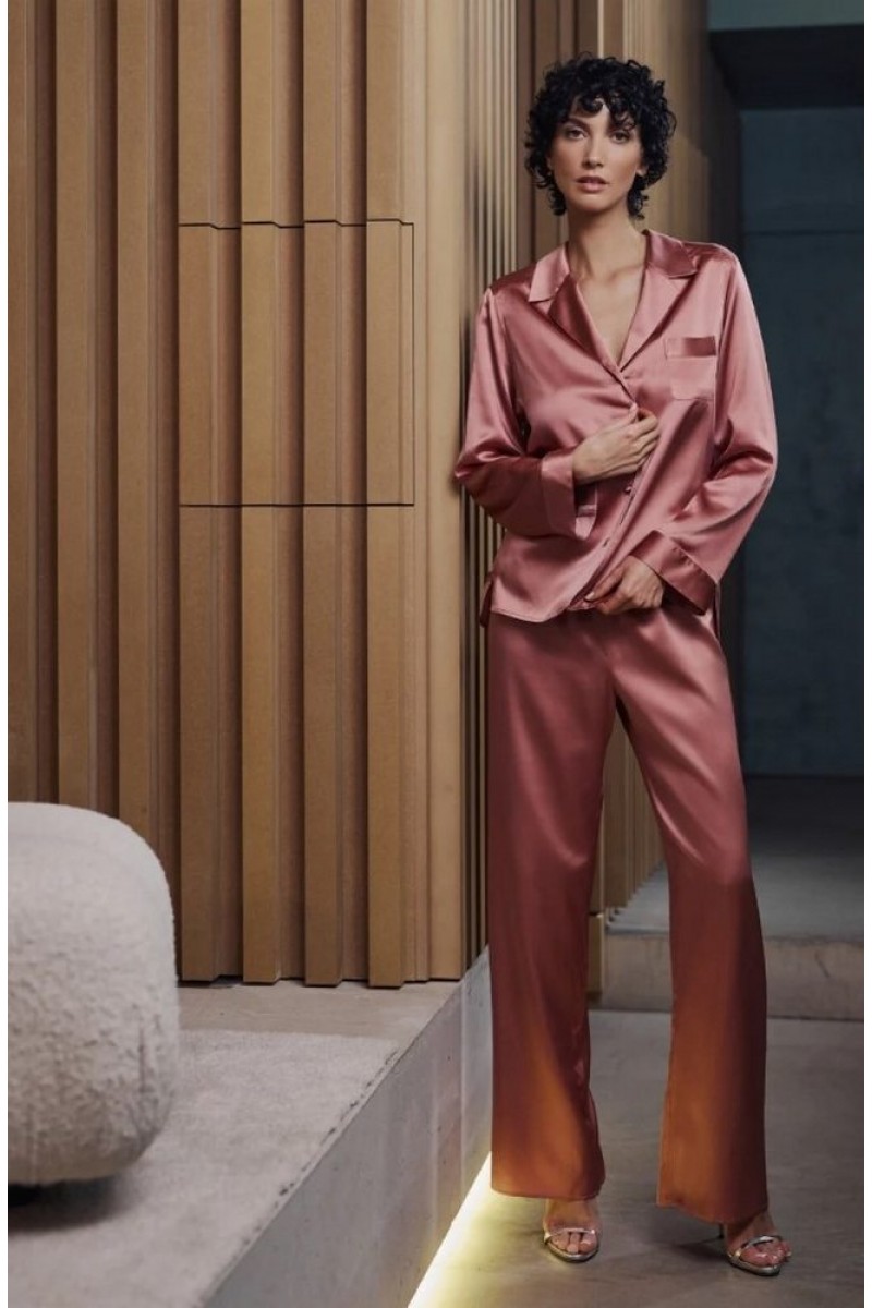 Пижама Marjolaine BONNIE 4BON5502 0081-Комплект из двух предметов: рубашка с длинными рукавами и брюки прямого кроя. Ультрамягкий атлас с добавлением шелка.