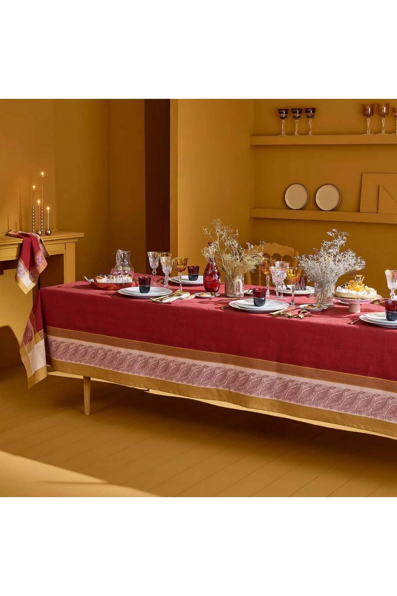 Скатерть Garnier-Thiebaut Франция ALEXCANDRIA RUBIS 174х364 в классическом стиле в бежево золотистых тонах. 100% дамасский мерсеризированный хлопок с жаккардовым рисунком. Инновационная пропитка Green Sweet. В случае попадания грязи или пятна, обычной тряпочкой или губкой протрите образовавшееся загрязнение, без любых других средств. Марка Garnier-Thiebaut позиционируется как продукт класса люкс и является лидером в этом сегменте. В наличии разные размеры, уточняйте у менеджера по тел 89647070008