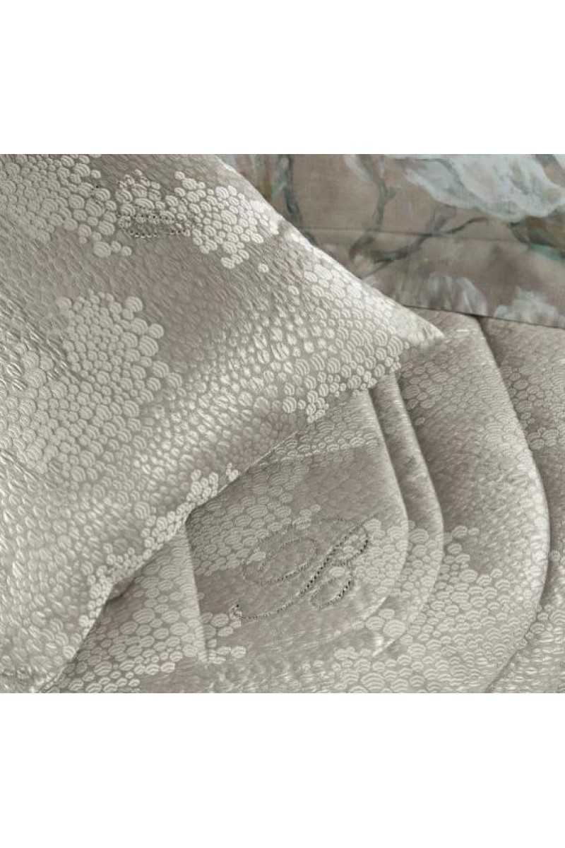 Элитное покрывало Blumarine KIMBERLY 270х270 серебристо-серое 51 выполнено в строгом итальянском и классическом стиле из плотной хлопковой ткани, специальной обработки от статики. Оно средней плотности и внутри наполнено полиэстером. Цветочный рисунок в серо - лиловом цвете.
