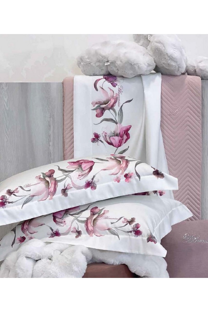 Элитное постельное белье Blumarine FLEURETTE 02 на светлом фоне розовые цветы упаковано в фирменную коробку . Материал высшего качества - мако сатин плотность 300тс. Необычайно шелковистое, нежное и прочное.